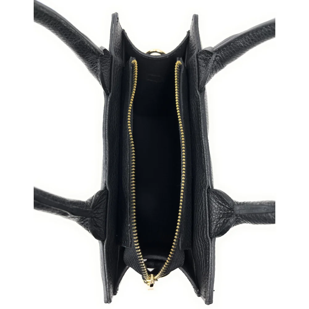 - Forme : Sac trapèzePorté : Bandoulière, crossbody (croisé), épaule, mainType de cuir : Cuir de vachetteMatière principale : Cuir grainéLargeur x hauteur x profondeur en cm : 25 X 21 X 9Poids en grammes : 715Hauteur anse en cm : 13Bandoulière : Amovible, ajustableBandoulière matière : sangle synthétique et cuirBandoulière longueur en cm : 73 à 109Finitions métalliques : doréesFermeture : zippéeTenue : rigideIntérieur : Doublure synthétiqueVolume de rangement : Un seul compartimentPoches intérieures : Une poche zippée et une poche plaquéeTaille des sacs a main femme (hors voyage) : Mini-sac (De 17 à 25 cm)